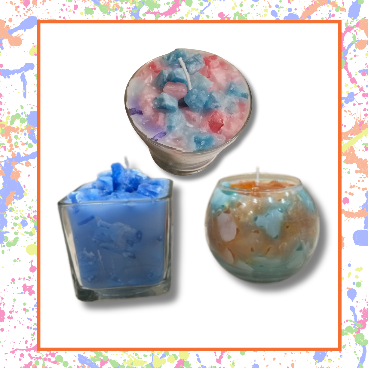 New to Busy Bees: Candle Making! This is a super fun activity for the kids. Each attendee will design their own candle using a of rainbow colors and pick their favorite scent to add. Candles are available to take home the same day of the party.