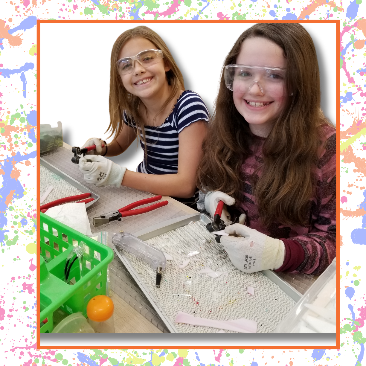 The beauty of stained glass without the heat! Your child and birthday guests will choose from a variety of forms to build their own faux stained glass masterpiece. Using glass bits of multiple colors, each piece will be custom designed. After the design, the attendees will learn how to resin their projects to make their own “stained” glass project. Projects will be taken home from the party.