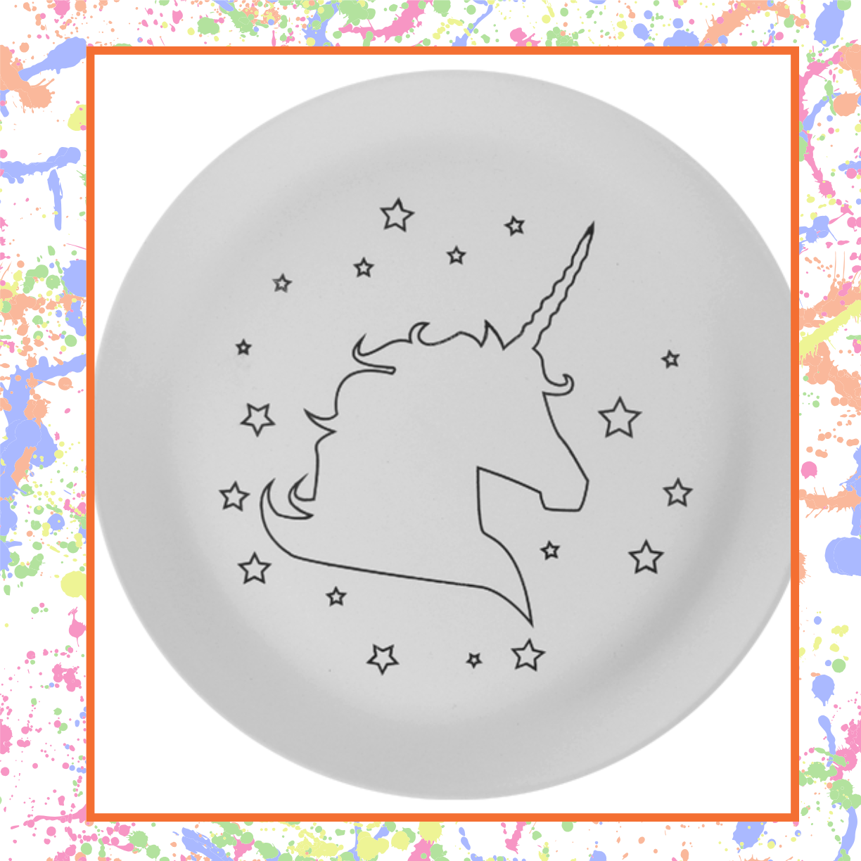 Have a magical party at Busy Bees! Each guest will paint their own special unicorn plate (image is already on the plate)! Busy Bees will personalize names on the plate after the party too. Plates are available for pick up after 1 week.