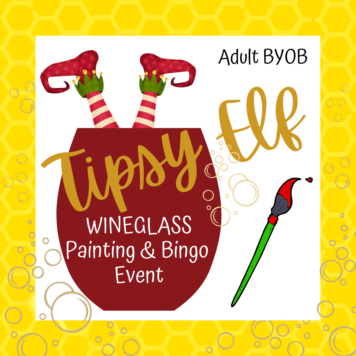 Tipsy Elf Wine Glass Painting & Bingo Party