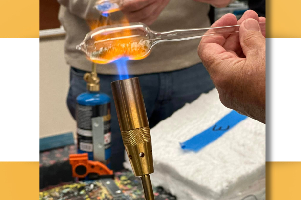 Blown glass projects will be available to take home 60-90 minutes after class if cool enough.
